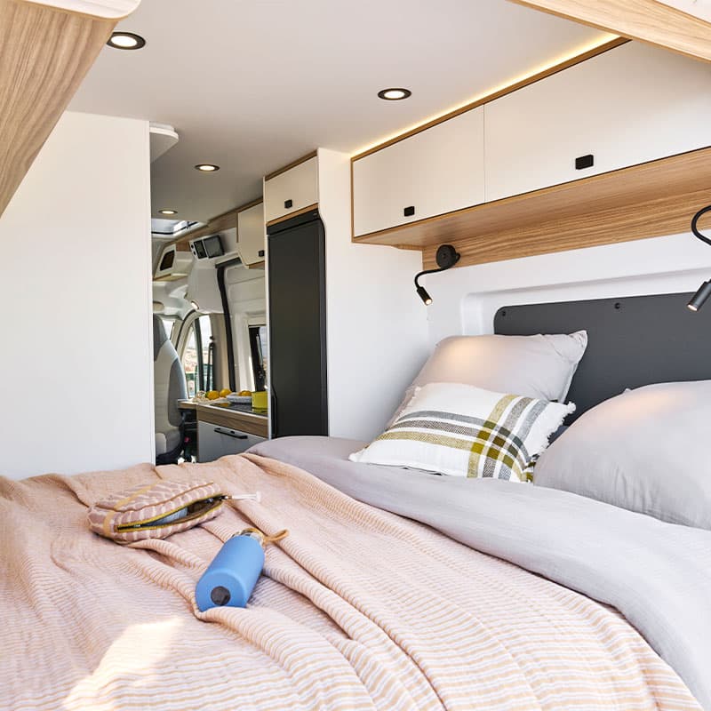 In 2026 maakt een van met een unieke indeling zijn intrede in het assortiment: de V630S. Een gezinsvriendelijk voertuig bij uitstek, met achterin modulair stapelbedden die zich aanpassen aan alle wensen en reismodi.